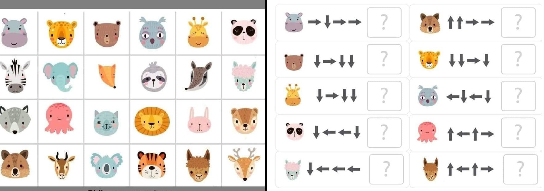 A gyerekek akadályokat tesznek fel a pályára. Felteszik a teknőst és a csigát is, távol egymástól. Az 1. játékos mond egy utasítást, amit a tőle jobbra ülő 2. játékos végrehajt. Ezután ő mond egy utasítás és így tovább körben. Cél, hogy a teknősnek el kell érnie a csigát.